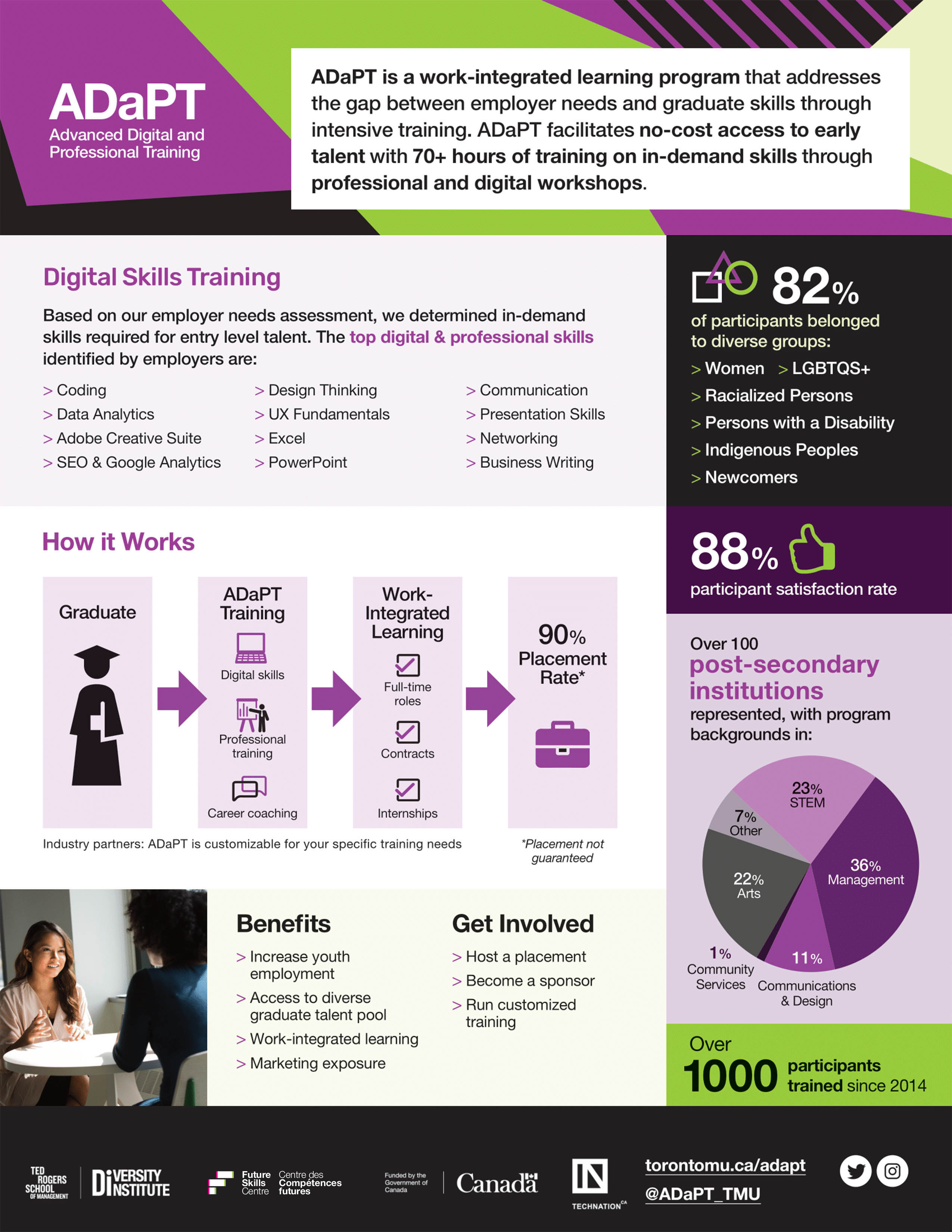 ADaPT is a work-integrated learning program that addresses the gap between employer needs and graduate skills through intensive training.