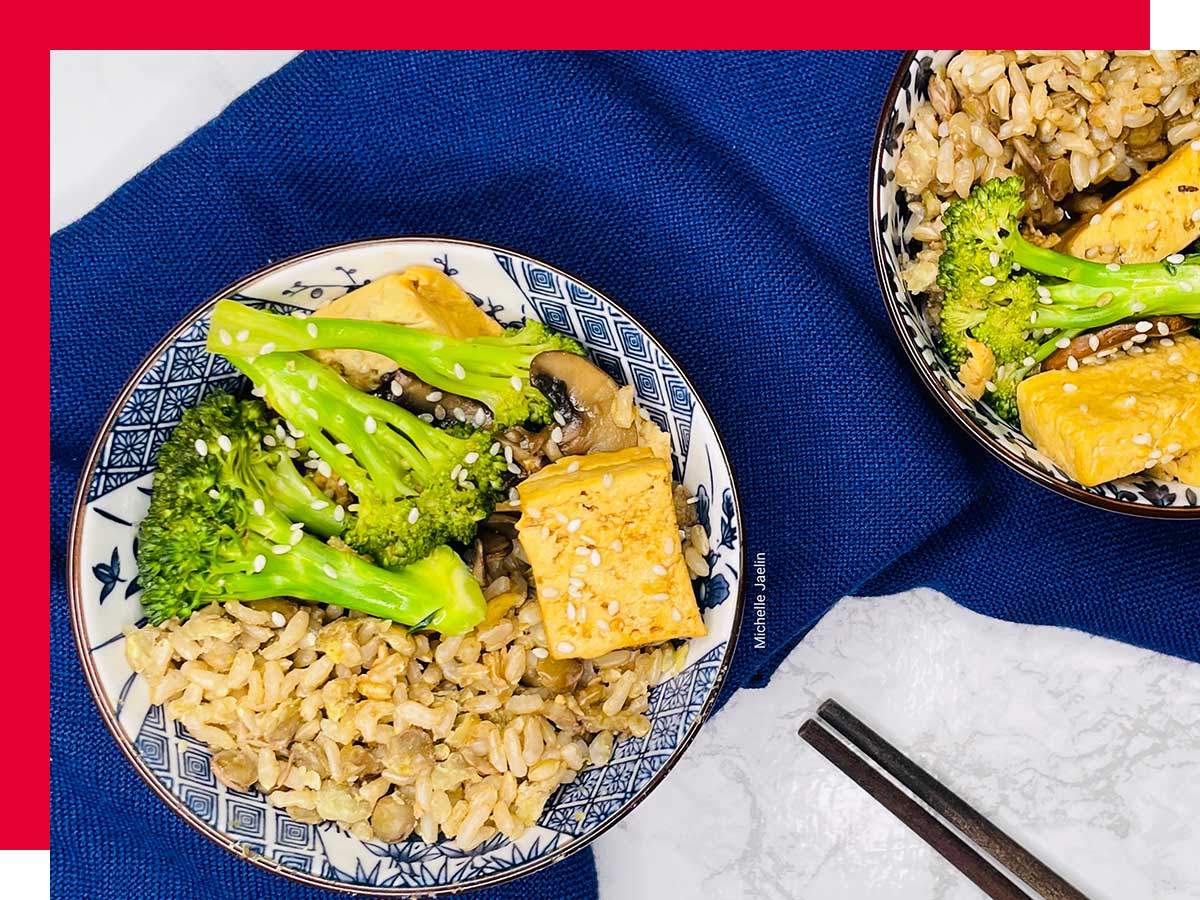 Michelle is sharing one of her favourite culturally inspired recipes—a delicious plant-based broccoli mushroom tofu bowl. "This recipe combines my Chinese heritage with the knowledge I gained from the Nutrition and Food program," she said. "Authentic, healthy-ish and flavourful are the core values of food I like to bring to my diverse audience."
