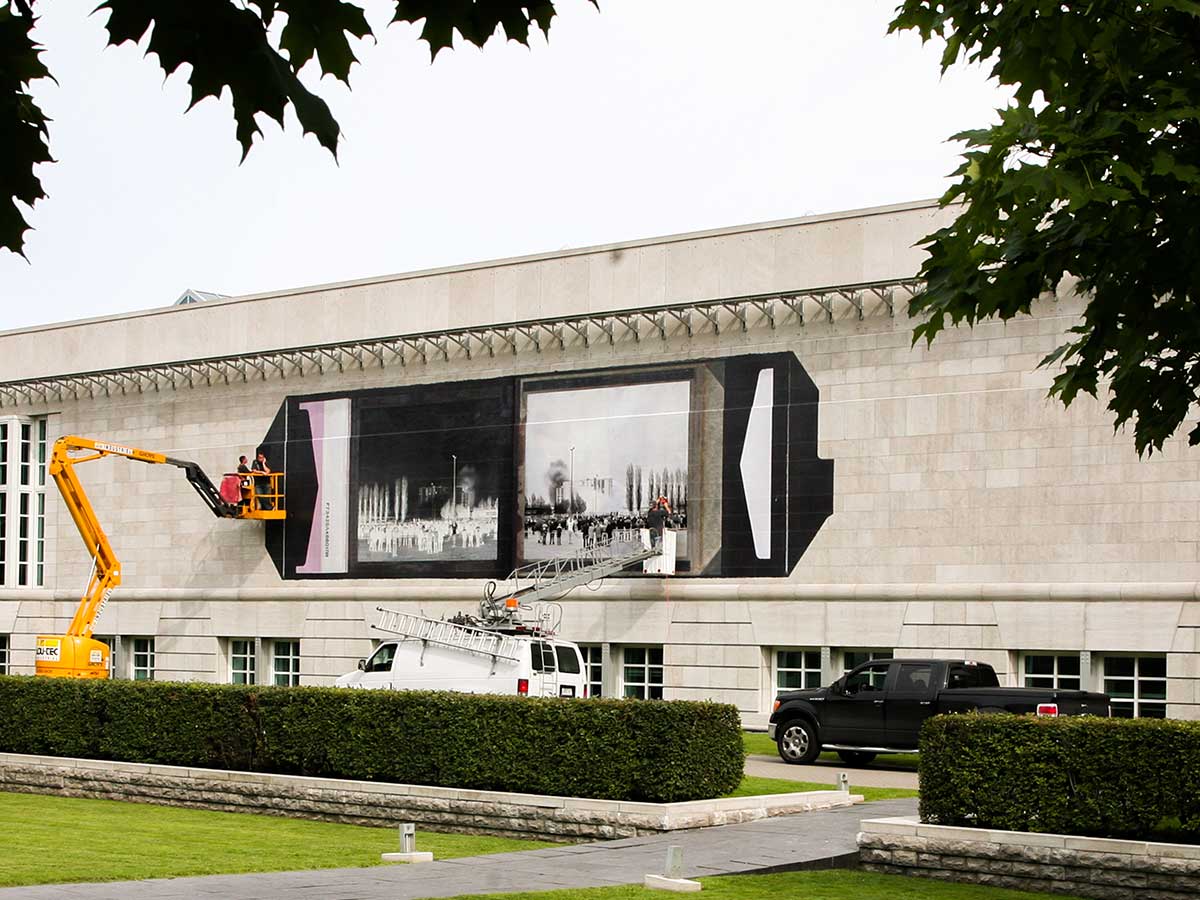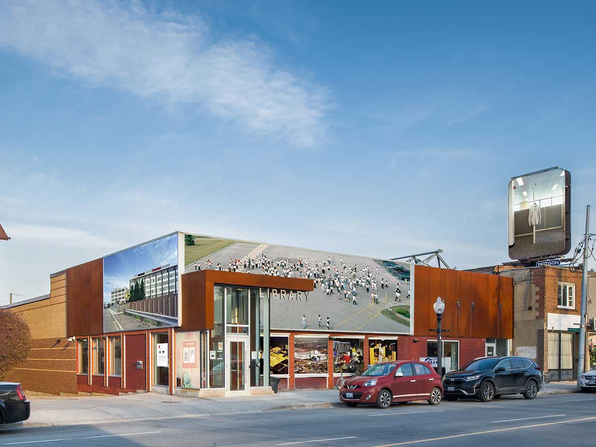 The Last Day of Work, Public Installation, The Contact Photography Festival, Mount Dennis Library, 2023; Installation of Photographic Proof, Le Mois de la Photo, The Canadian Centre for Architecture, Montreal 2009; Photos by Robert Burley