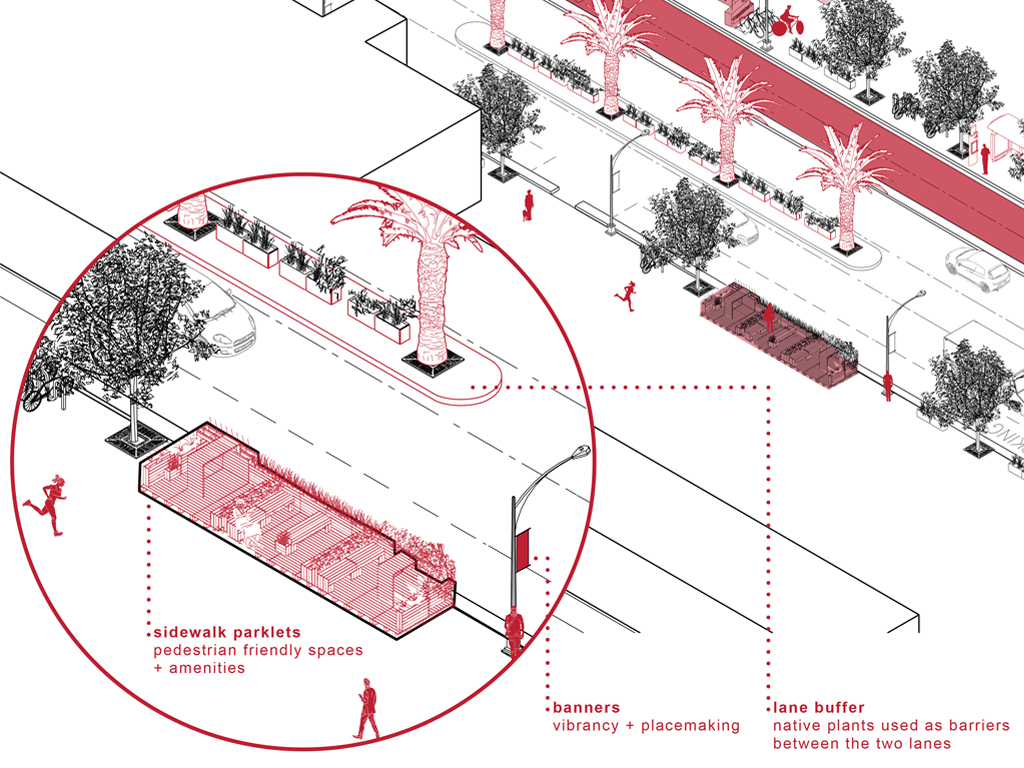 Marwa: The design can be implemented in other cities, so there is a certain element of flexibility built into the road design and landscape: whether it’s native vegetation, or local artists engaging with the space. Community engagement is important to us: it allows an identity to flourish from that street. What we understand to be an “all American” street (both historically and culturally) should be defined at the community level, and the community should be involved - whether it’s through the decision-making around the design, or how the space is actually created.