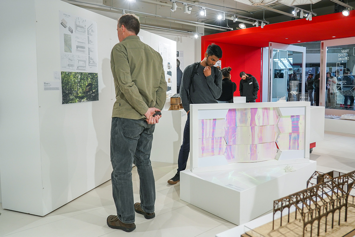 Designed by Toronto-based architecture firm Gow Hastings Architects, the 1,184-square-foot gallery features flexible hanging and display systems for exhibiting a variety of multimedia installations and sculptural models. Opening into the Architecture Building’s main floor atrium space, the gallery hosts annual academic events, including Awards Night, Collaborative Exercise, and the Year End Show.