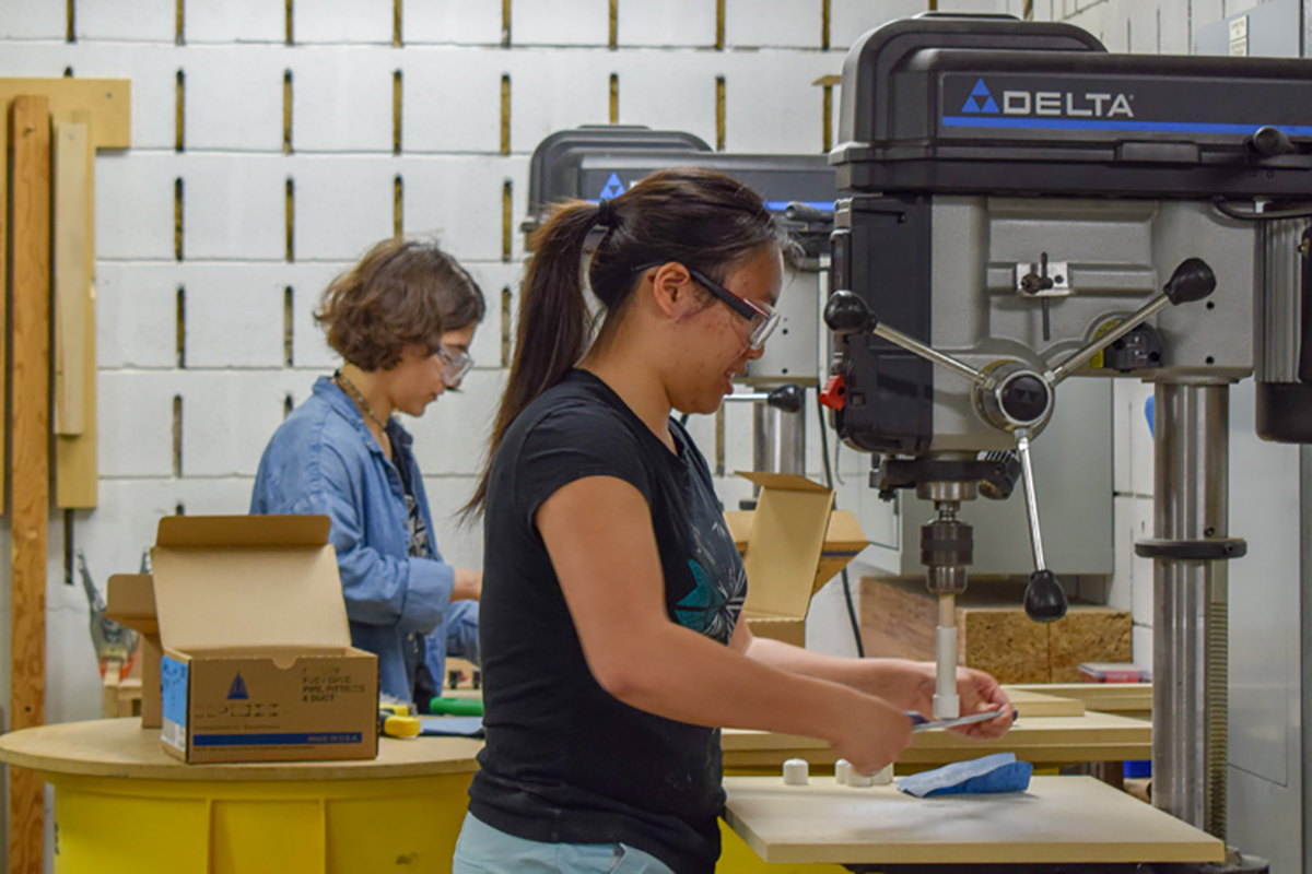 Get hands-on experience in our Woodshop, where you will learn how to create materials for your three-dimensional architectural explorations and other design projects. From miter saws and drill presses to belt sanders and jointers, learn how to safely operate a variety of tools and machinery. Trained staff will help you become familiar with the equipment and also provide technical support and ensure safety. The Woodshop also supports fabrication projects for DAS students and faculty, including building full-scale structures for co-curricular activities and display pieces for the Paul H. Cocker Gallery.