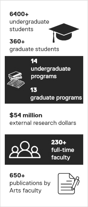 The Faculty of Arts advances inclusive, transformative education and research in the humanities and social sciences. Through a liberal arts education, experiential and career-integrated learning, national and global engagement, we prepare students to think critically, act ethically, and engage meaningfully with the world around them.