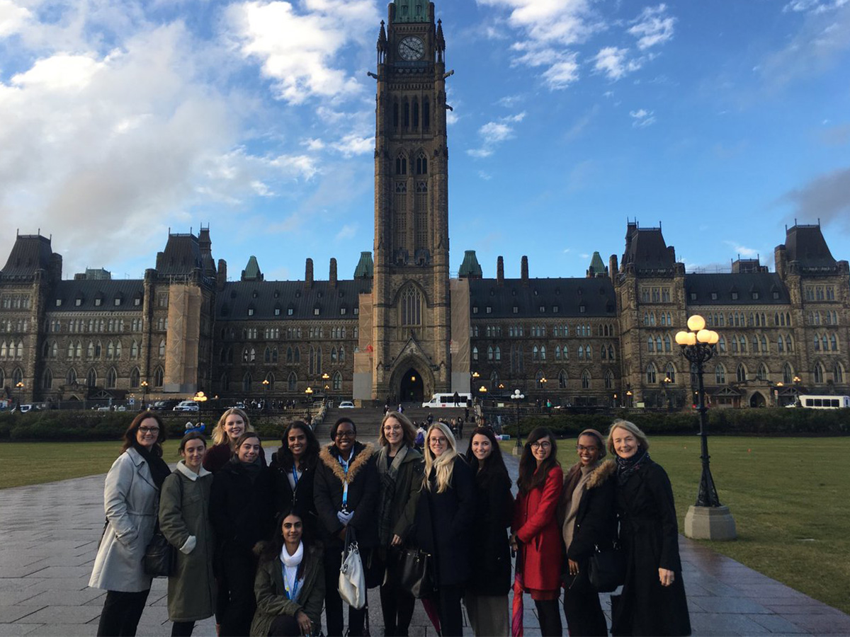 To that end, 12 female students – cutting a wide swath of disciplines from psychology and politics to environment and urban sustainability – boarded a train from Toronto on November 5 bound for Canada’s capital. Over the next two days, their packed schedule was filled with shadowing MPs to get a glimpse of their work life, taking in Question Period, observing media scrums with politicians, and networking with them over lunch.