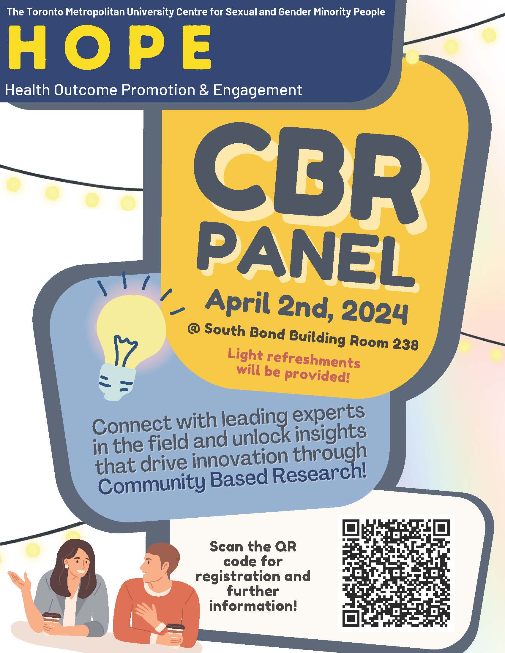 The HOPE TMU Centre for sexual and gender minorities is hosting a panel on Community based research, led by Dr. Trevor Hart from the psych department, Prof. Julie James from the school of child and youth care, and Aaron Bowerman, a member of the Anishinabek Nation 2SLGBTQQIA+ Advisory Council.
