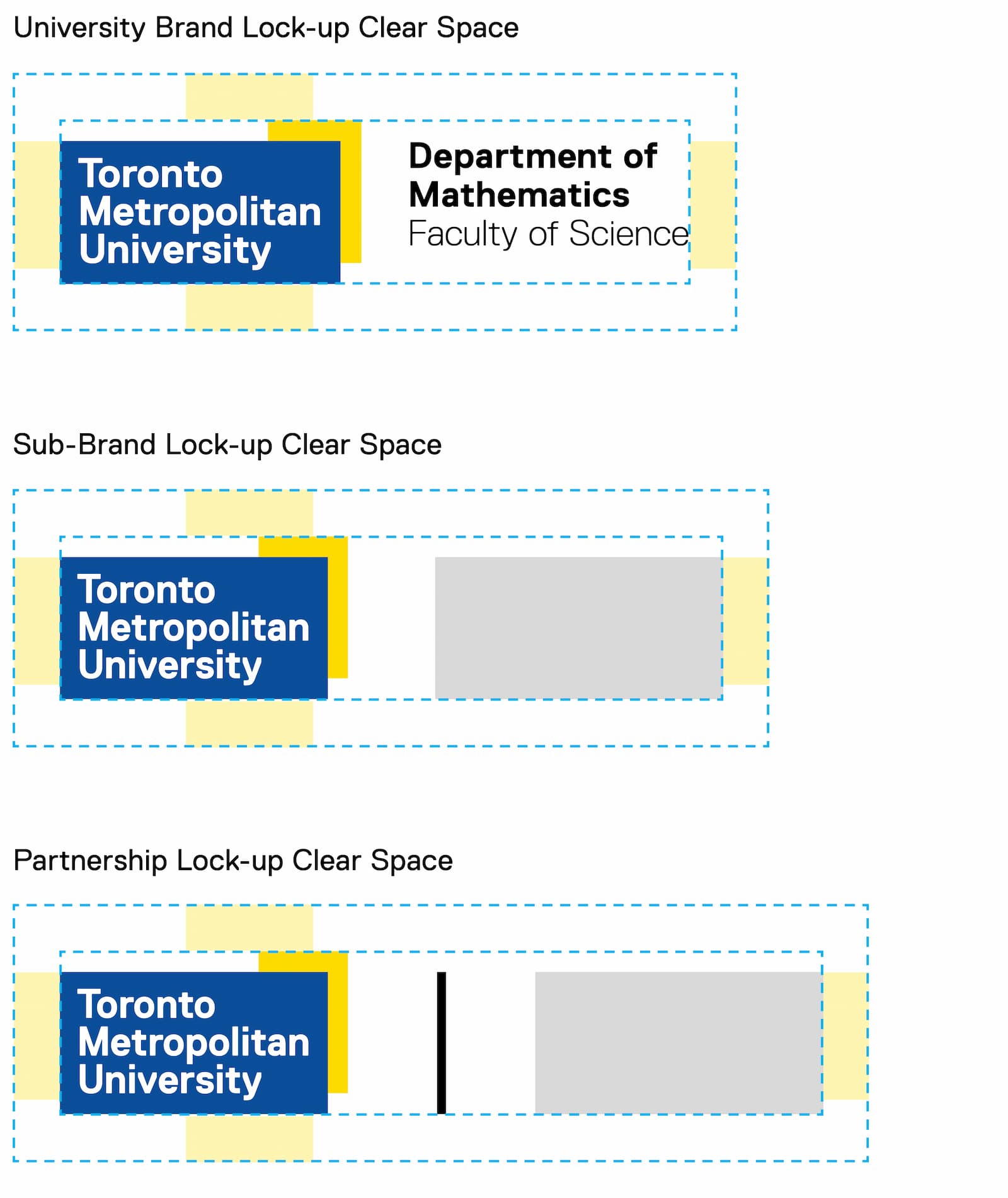 Do not attempt to recreate lock-up art from scratch. New lock-ups will be provided by the marketing team (University Relations). Please always connect with University Relations to determine where you fit into the brand architecture. Contact tmubrand@torontomu.ca with requests.
