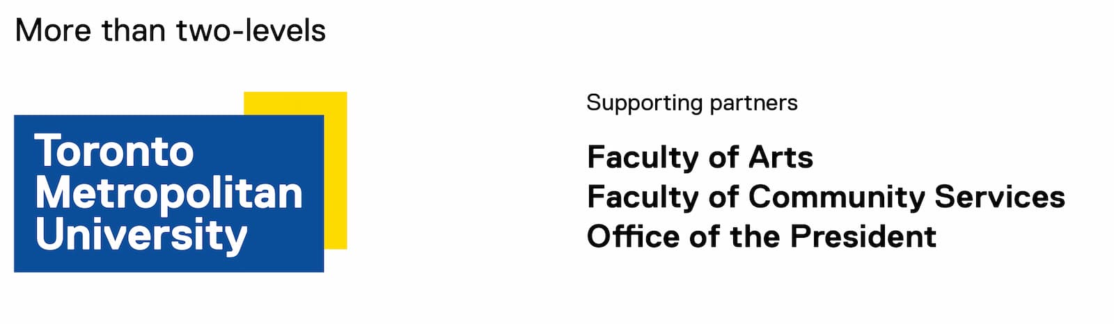 Partnerships exist between the university and other non-university businesses, institutes and public-facing organizations. In order to maintain the integrity of both Toronto Metropolitan University and its partners, the partnership lock-up maintains an even hierarchy between logos.