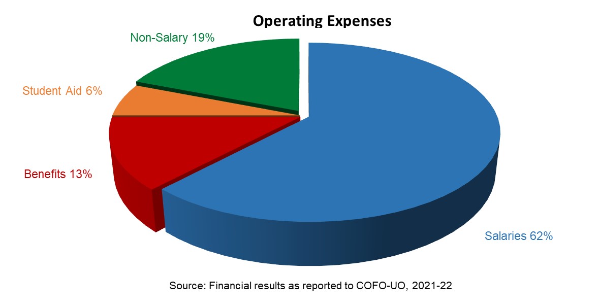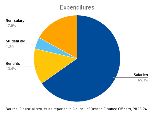 Over three-quarters of our operating expenditures are for salaries and benefits. The majority of these costs are determined by negotiated collective agreements with our three main unions: the Toronto Metropolitan Faculty Association (TFA), the Ontario Public Service Employees Union (OPSEU), and the Canadian Union of Public Employees (CUPE).