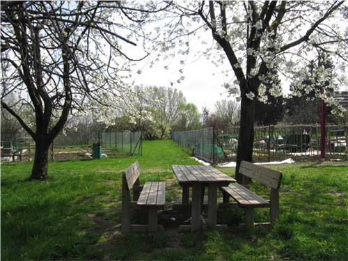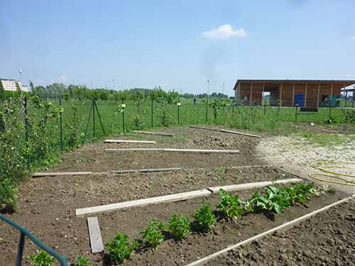 Orti Lunetta Mariotti | Questo parco, inaugurato nel quartiere Navile nel 2009, è stato concepito per favorire le relazioni sociali nel rispetto dei caratteri del luogo (un’ex area militare coltivata per decenni dalla popolazione anziana del quartiere). Sono state salvaguardate le preesistenze arboree e la biodiversità dell’area, integrando il nuovo parco nel sistema del verde dello storico Canale Navile. Cinque distinti settori di parcelle ortive di 35 mq ciascuna sono disposti nell’area in modo irregolare, alternati a radure prative, gruppi alberati, zone attrezzate per la sosta e il gioco, percorsi pedonali. Ogni settore è recintato e segnato da un caratteristico portale di ingresso in legno colorato. Un nuovo fabbricato realizzato con elementi volti al contenimento energetico funge da sede per gli ortolani e ospita numerose attività ricreative per le scuole, le famiglie e i residenti del quartiere.