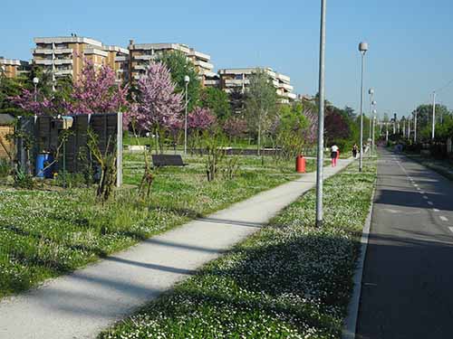 Parco San Donnino | This large park in a Bologna suburb opened in 2010, incorporating a fruit orchard and areas for gardening by the elderly and school groups. Neighbouring residents initially mobilized in opposition to a housing project proposed on this site. Many participated between 2006 and 2008 in a multi-stakeholder process to create the new park that included design workshops. A recent municipal act enabled the Association Fascia Boscata to manage the park based on a special agreement with the City.