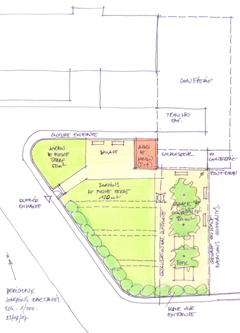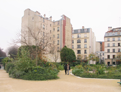 Located in the 3rd Arrondissement of Paris and created in 2004, this small community garden of about 120 m2 is found in a formerly vacant lot. It is located by the Jardiniers du 3e Association. 10 rectangles, each containing 3 parcels of 1 m2 were developed by the Direction des Espaces Verts et de l’Environnement de la Ville de Paris (Authority for Green Spaces and the Environment, City of Paris). 3 plots are allocated to kindergartens and schools. The 27 others are part of a public planting program. Roses and espalier fruit trees have been planted along the walls of the garden and a tool shed and greenhouse have also been installed.