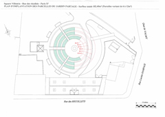 This garden has been present in the Jardin Public Villemin since 2005. It is landscaped in the shape of a circle, 300 m2 in size and opening onto the largest park in Paris’ 10th Arrondissement. The inhabitants of the neighbourhood, who are members of the Ville Mains Jardins association, collectively manage the functions of the garden. Gardening is practiced collectively with certain plots being reserved for partners of the project. Raised beds installed on paved surfaces allow members of the public with limited mobility to participate as well.