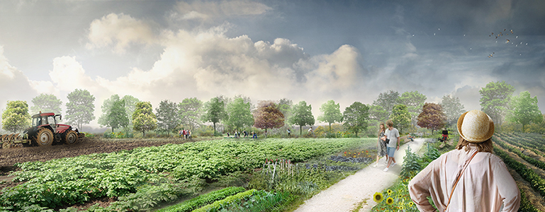 Le projet lauréat sera mis en place compte tenu de quelques modifications apportées pour des raisons pratiques et financières. « parcfertile » créera un lien entre le tissu urbain de ces villes et le passé agricole de la région.