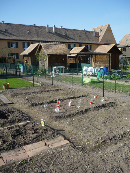La ville céda un terrain de 24 hectares à la Société coopérative de logements populaires (SOCOLOPO), à 6 km du centre-ville. Suite à un concours, le projet de l’architecte alsacien Edouard Schimpf est retenu en avril 1910. Dès la fin 1911, la majeure partie de la cité est habitée. Le plan est organisé en onze îlots de 100 x 100 mètres de côté. Les habitations (457 logements de 45 à 55 m²) dessinent un vaste espace central découpé en jardins potagers d’une superficie variant entre 120 et 150 m². Des chemins de terre orthogonaux traversent les jardins potagers, au cœur des îlots, reliant les voies secondaires de la cité. Chaque logement se voyait attribuer un jardin potager, qui devait apporter aux habitants un complément alimentaire.