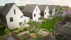 Stockfeld underwent major rehabilitation between 2003 and 2005, including restoration of its vegetable gardens, some of which had been transformed into leisure gardens. In this context, the SOCOLOPO, with Habitat de l’Ill, held a competition in 2010 for a city-owned plot of about one hectare adjacent to the garden city. The aim of this operation was to show that the century-old garden city model is still pertinent and can be revived, given the present-day challenges, new ways of living, and contemporary relations between city and nature. The project has been initiated, for completion in late 2013, to include 19 units of social housing and 36 rent-to-own units.