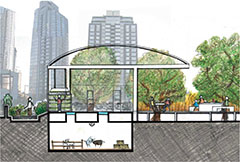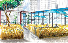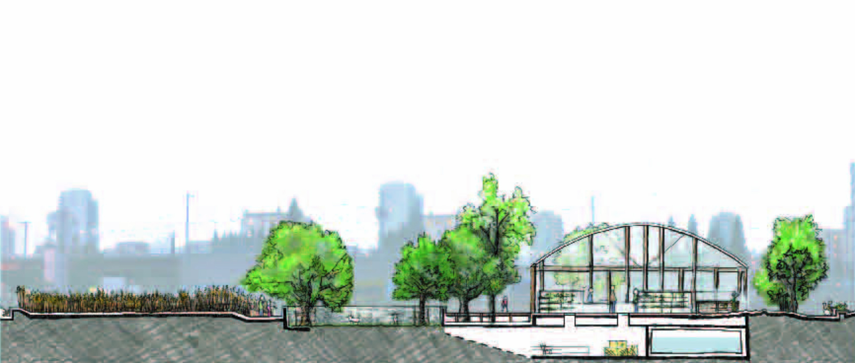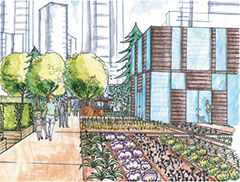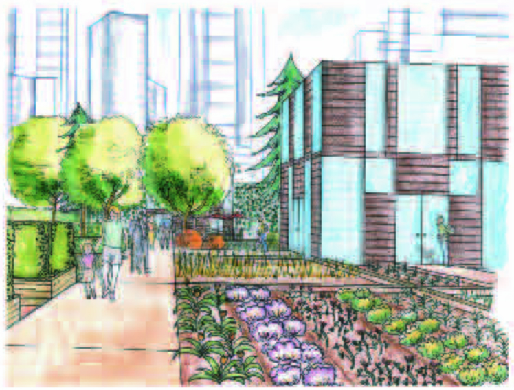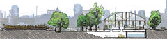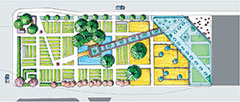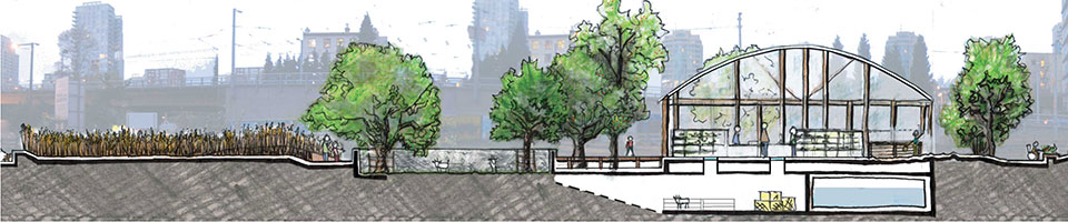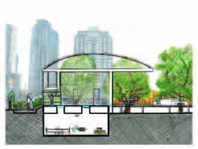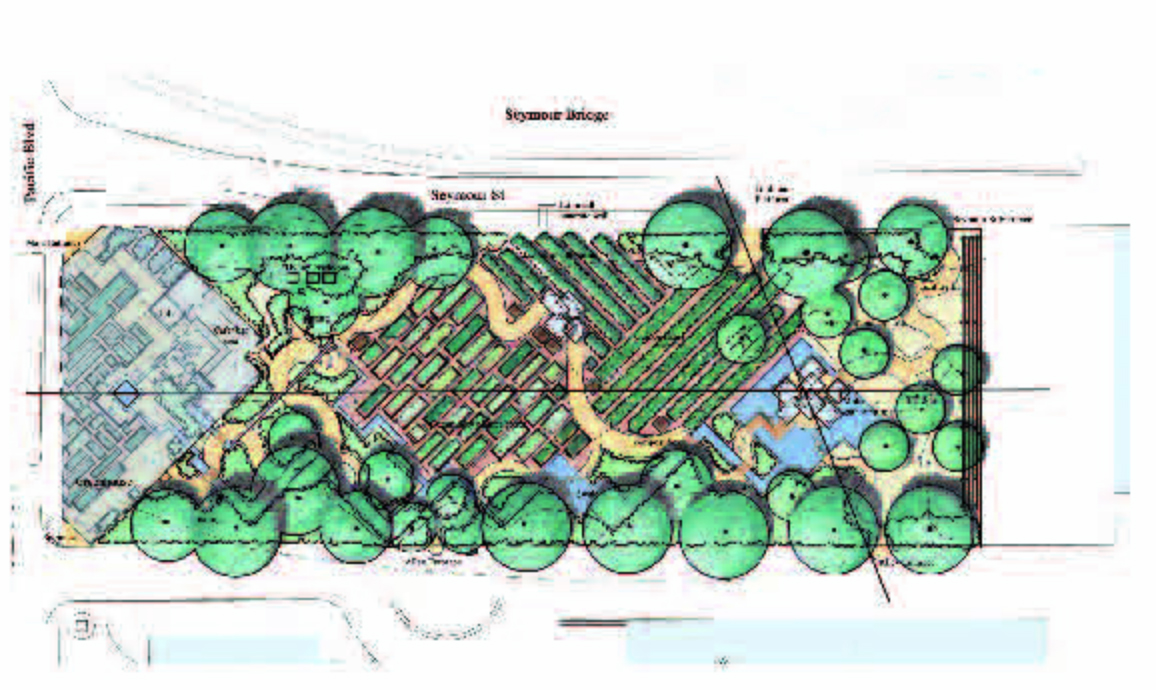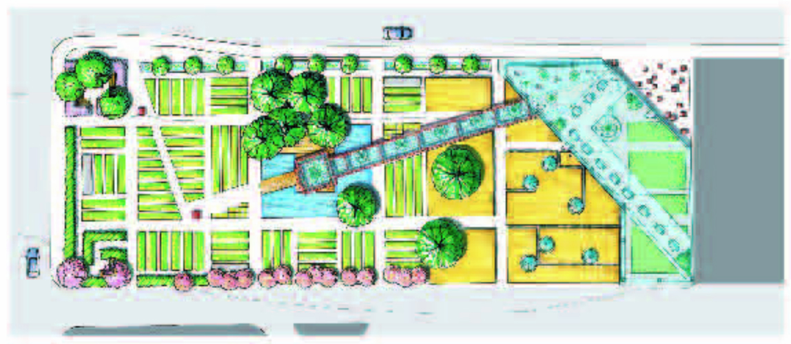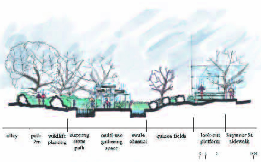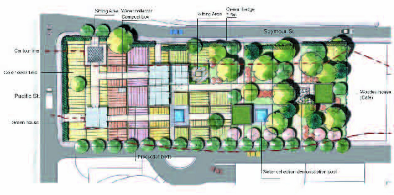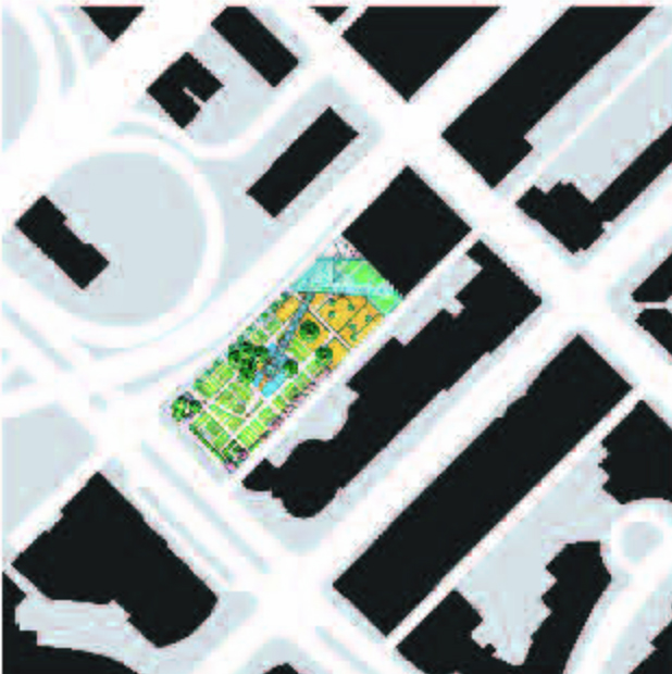 Students were given the assignment of creating an inner city community demonstration garden. The site was understood as a network of complex spatial, ecological, economic and cultural histories. After thorough analysis of the complex process of food production and distribution, the overall networks and connections of the site within the city context were considered. The findings were overlaid with the aspects of creating an informative, accessible and functional inner city community demonstration garden. The key to the design was to integrate the functional and educational food production spaces with the leisure activities of an inner city public open space.