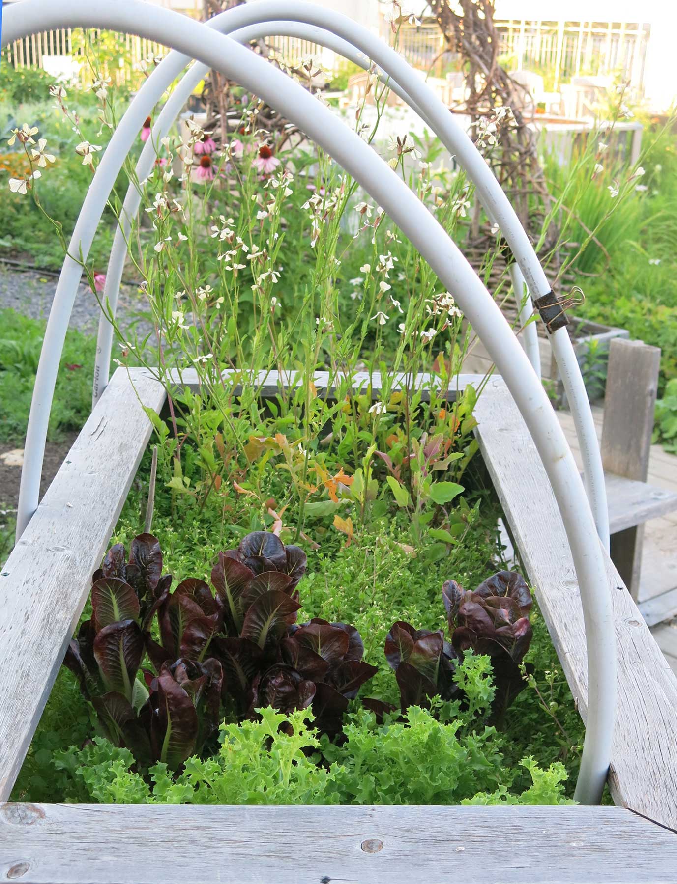 Plant list: in 2013 the following were cultivated on the rooftop: 48 varieties of annual vegetables (mostly heirlooms); 25 varieties of native plants; 52 varieties of herbs; 20 other fruits and flowers.
