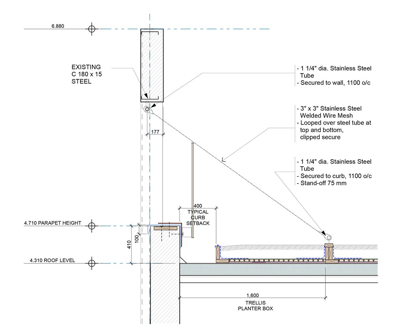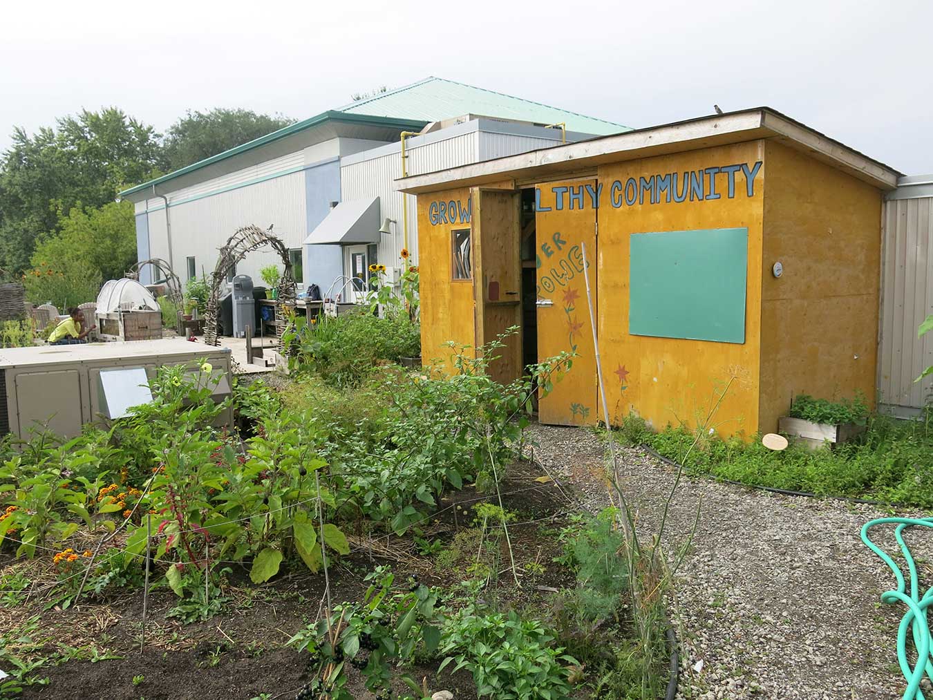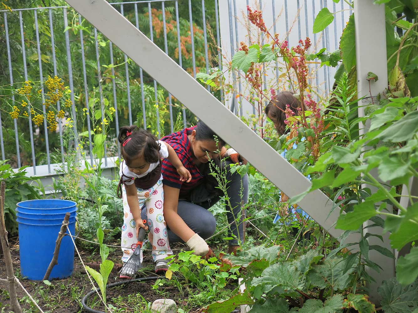 The green roof was not part of the initial capital project but the idea of incorporating it came about in 2009. Access Alliance saw its therapeutic benefits and opportunity for additional programs, the United Way saw its potential in creating an additional green space in the densely populated neighbourhood and assisted in finding the donors, the Bank of Montreal and Ontario Trillium Foundation. Fortunately, the flat roof of the renovated building had sufficient capacity to support the additional loads from the green roof. The project architect, David Fujiwara, developed plans for the green roof and pergola. The installation of the green roof was completed in 2010 and garden was established in 2011.