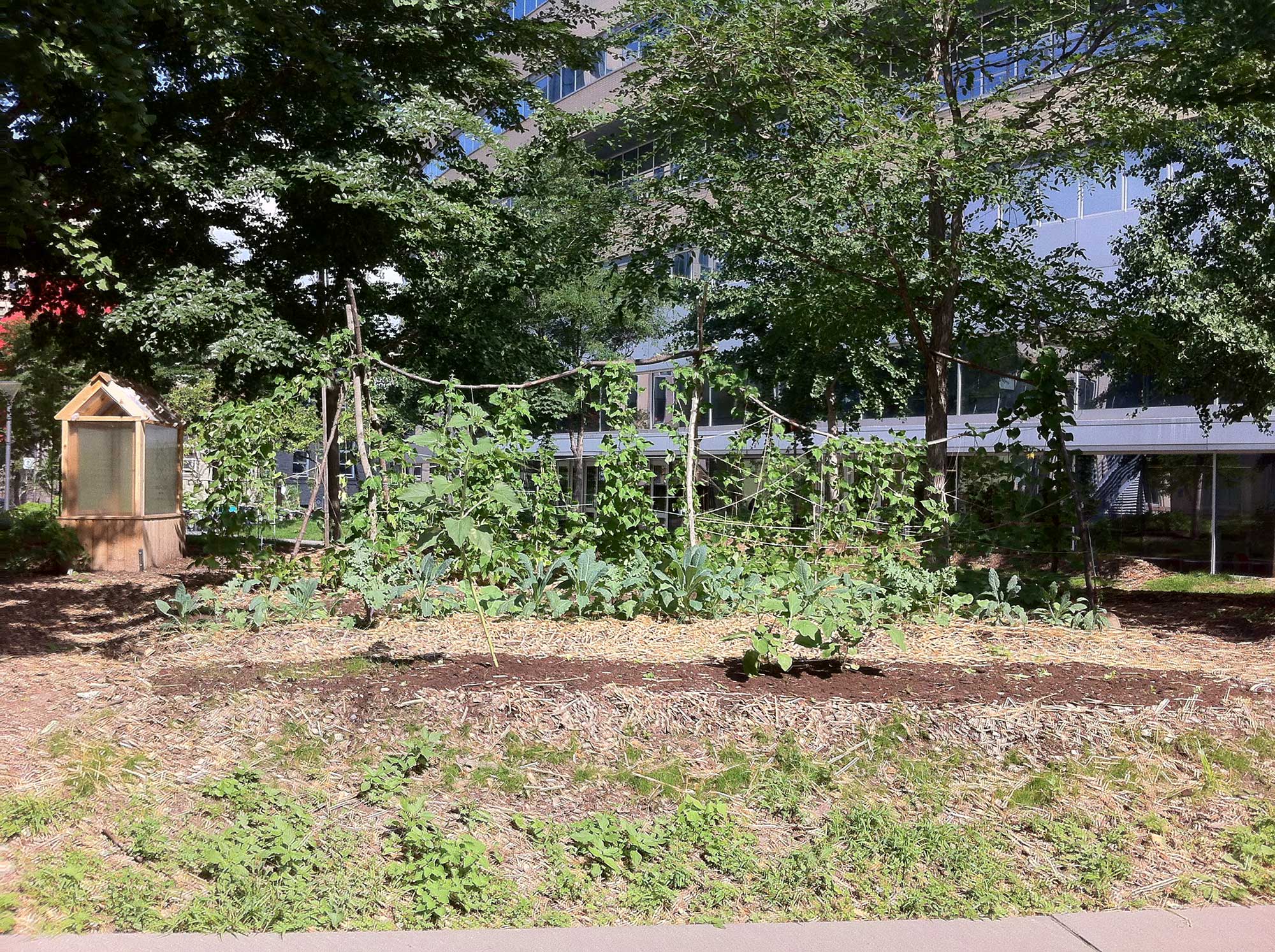 Cette initiative a commencé de manière informelle, quand des étudiants ont décidé de remplacer quelques carrés de pelouse sur le terrain de la faculté des sciences de l’UQAM par des plantes potagères indigènes. Après une courte période de temps, les autorités administratives sont passées d’une attitude de résistance au changement à un appui formel de cette initiative étudiante d’embellissement, qui au final profite à l’Université en lui faisant économiser des coûts de maintenance. Leur contribution relève de la création de panneaux artistiques explicatifs de la démarche et répartis à travers le campus.