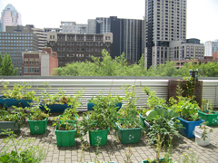 - 4 sites destinés au jardinage collectif sur toit, expérimentant diverses techniques de culture (contenants à double-fond par Alternatives, Smart Pot et Éco-box);