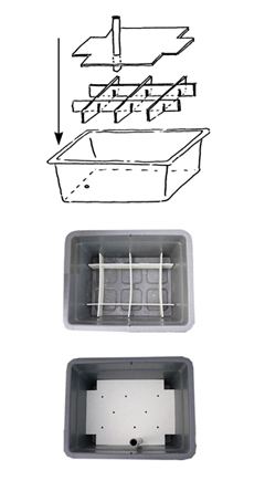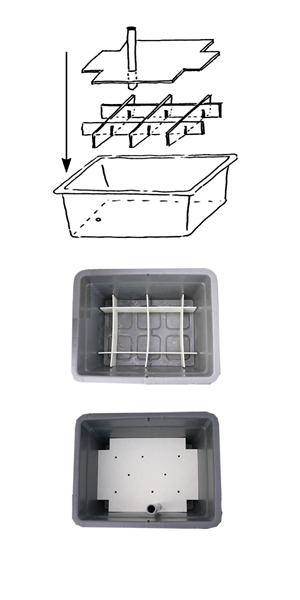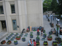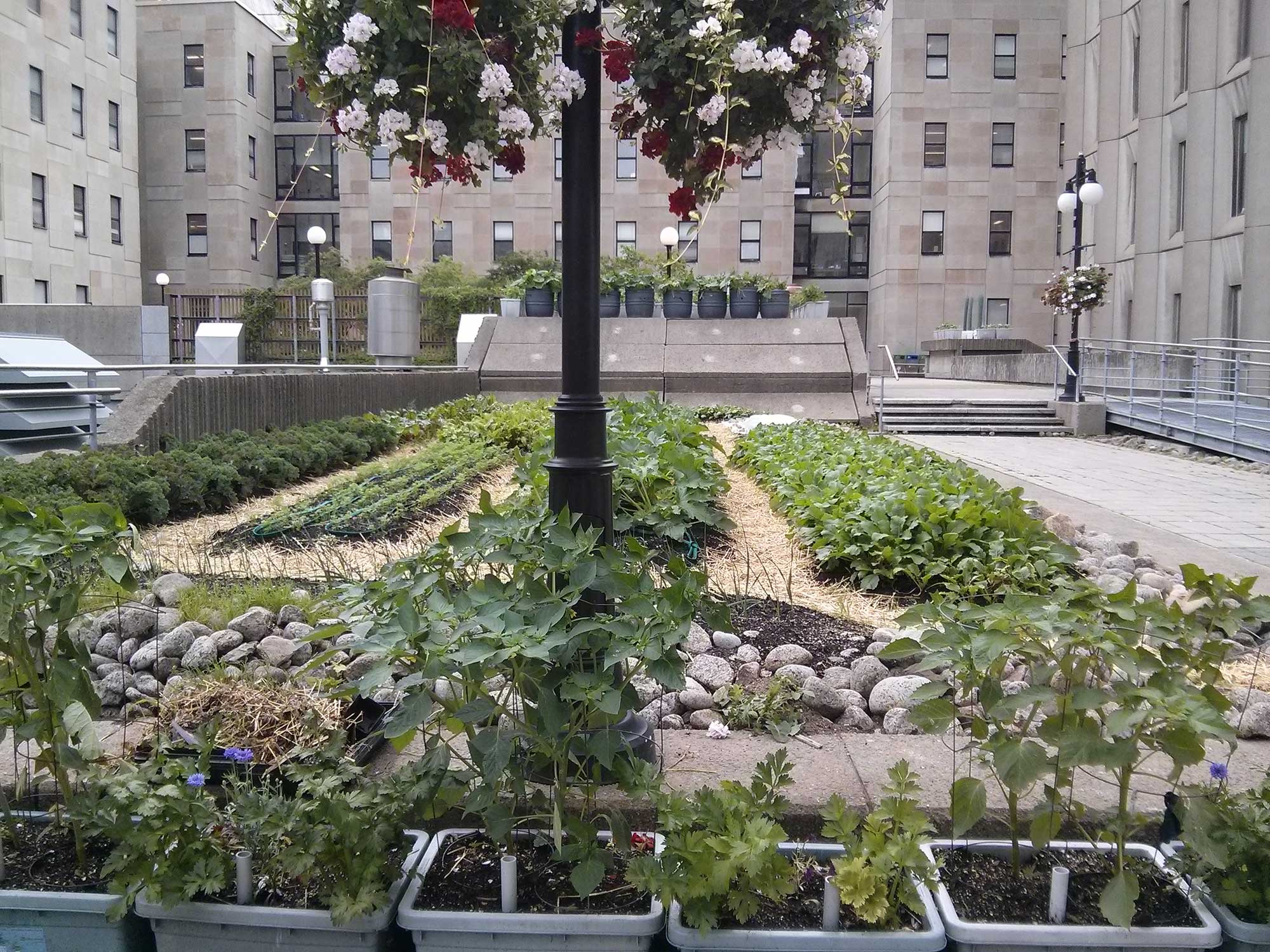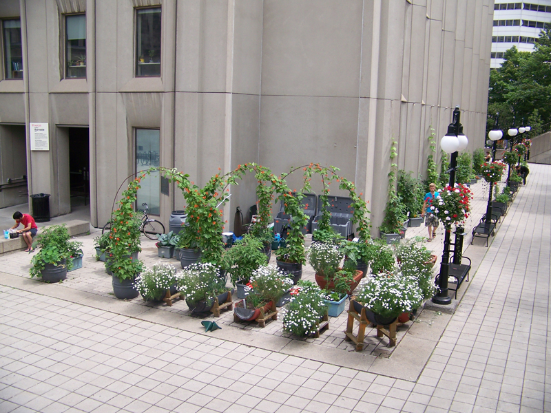 Purpose-built planters were designed for hard surfaces and also devised for ease of watering through the introduction of a built-in reservoir. The planters could be moved indoors in the winter and plants could be started in the containers before the short Montreal growing season begins. By using small modular planters, the garden was replicable in both smaller and larger spaces.