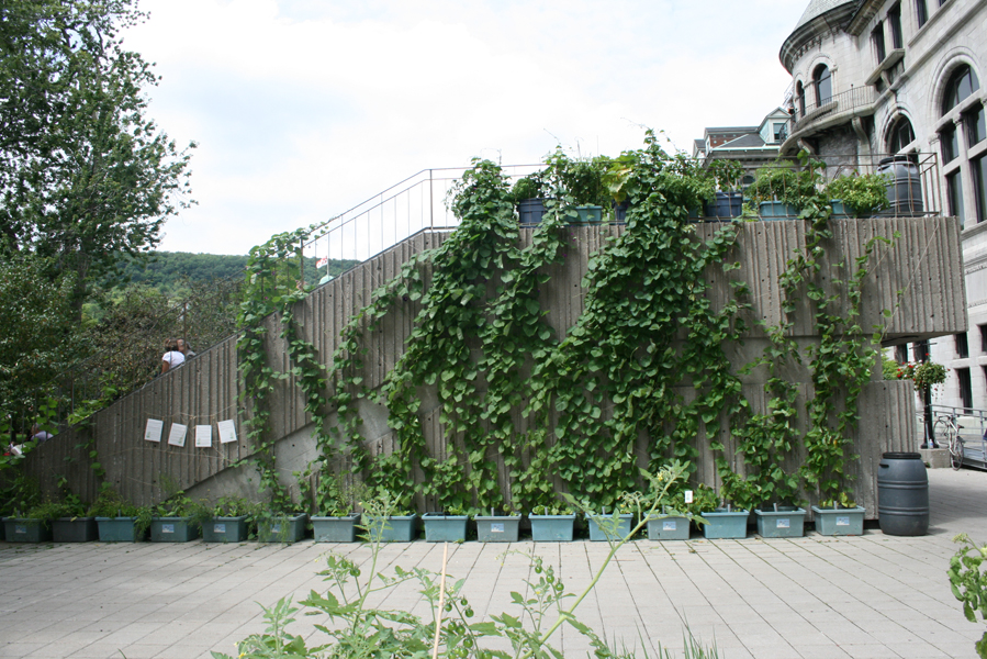 A shortage of community garden plots in Montreal highlighted the need for more growing space in the city, particularly the center. The research group realized that although urban land is extremely expensive, there are often “overlooked, underutilized, and neglected areas” just waiting to be used creatively. Hardscaping such as concrete and masonry plazas as well as walls and roofs are often the only available surfaces, as those found on the McGill campus, so the partners set out to use these resources.
