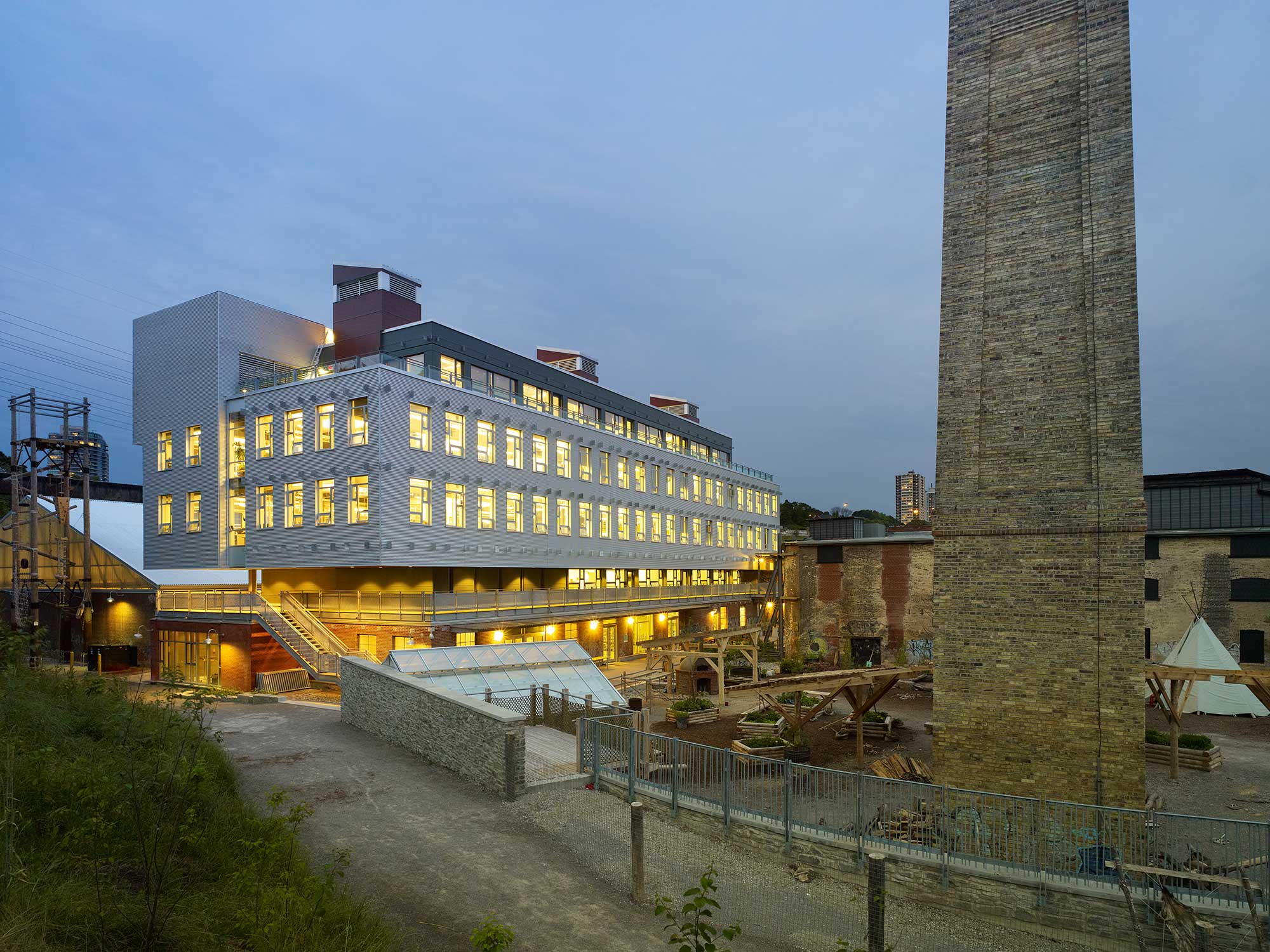 The Centre for Green Cities is the only new building on the site, incorporating a welcome centre, administrative offices for the Evergreen Foundation and workspace for Evergreen’s partners. The Centre also serves as an idea incubator, an education institute, an interpretive space, a showcase for green design, and a canvas for community expression.