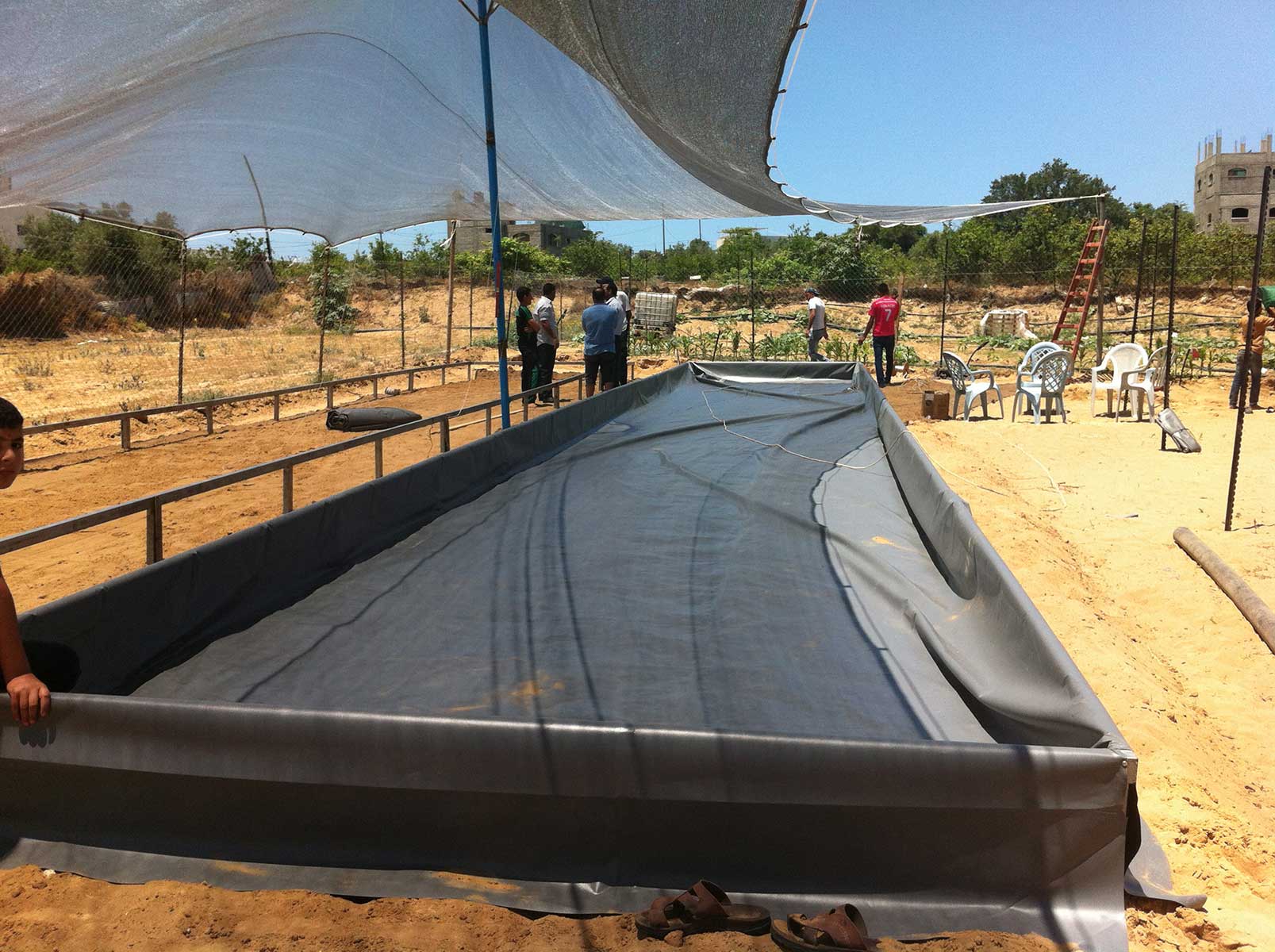 The current ongoing project (2015 – 2017) evolved out of the main lessons learnt from the failed pilot. Once activities of the initial project ceased, a number of the most successful beneficiaries approached FAO to consider demonstrating larger scale units for commercial use. Funding was then sought and secured from the Osprey Foundation, to pilot two larger scale systems to be run as two private farms. Funding was also secured for an experimental station to be set up on the Al-Mughraqa campus of FAO’s implementing partner in Gaza, Al-Azhar University.