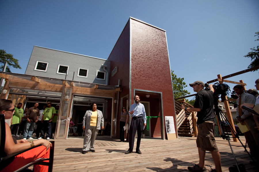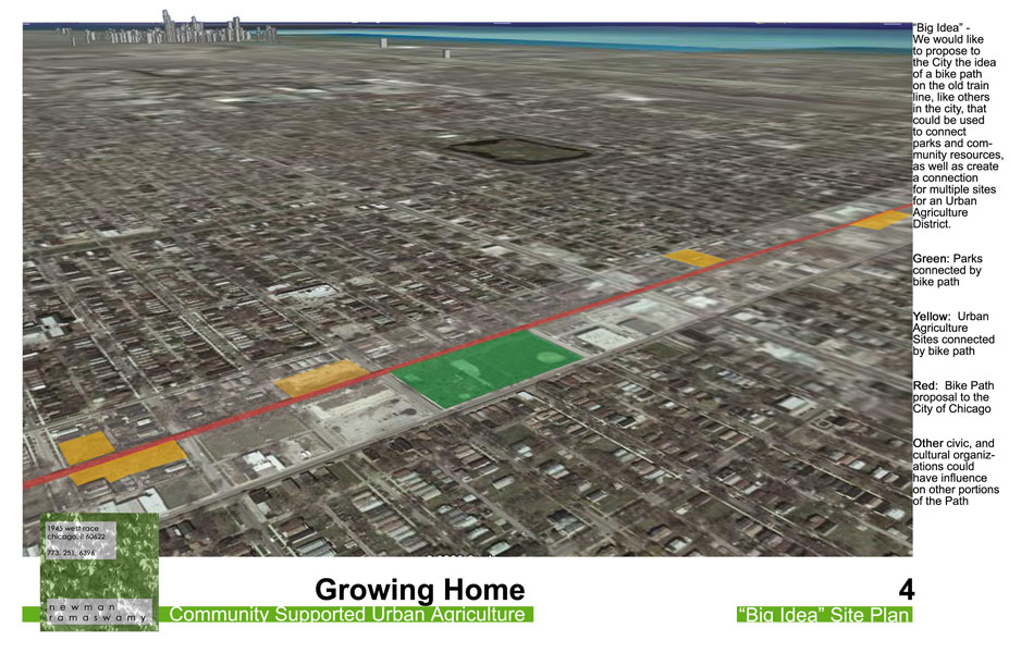 Le programme « Growing Home » de Chicago offre des emplois de transition à des personnes rencontrant des difficultés à s’intégrer au marché du travail. Il gère dans la région trois fermes certifiées biologiques. L’une de celles-ci, la Ferme urbaine de Wood Street (Wood Street Urban Farm), a fait l’objet d’une collaboration de plusieurs années entre « Growing Home » et SHED Studio, un bureau d’architectes local.