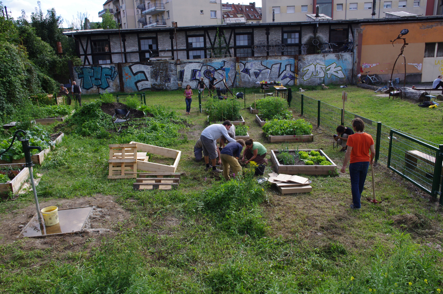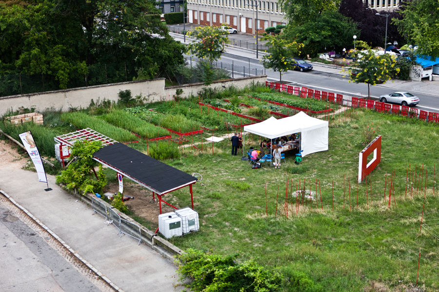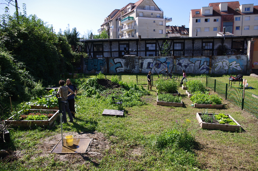 The Zeûgme Association was initially formed to create interdisciplinary urban interventions. It was only later and by chance that the members proposed to convert a local and conspicuously derelict site into a centre for the exchange of ideas that would benefit the inhabitants of Strasbourg’s quartier de la Gare. A food garden seemed the best starting point for realizing this vision. The association was supported by local authorities and La Semencerie, a nearby artists’ centre, and it strove to include local residents in planning. This allowed for a rapid and officially recognized opening of the new garden space, which now operates on a collective basis. Thematic raised beds, in which participants can sow and harvest freely, surround a common space used for cultural performances, concerts, building experiments and other events. These activities have become the soul of the garden.