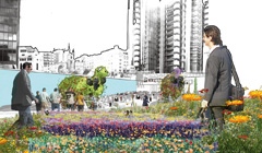 In many cities around the world, prominent city centre sites often stand empty, boarded up or used as temporary parking lots for years while they await development. These locations offer opportunities for short or medium term urban agriculture projects. In 2009 Mitchell Taylor Workshop won a competition to propose a use for up to 5 years, with a budget of only £125,000, for an empty site at Leadenhall Street in the City of London, where a proposal for a 47-storey commercial building was “mothballed” due to the credit crunch and reduced demand for office space.