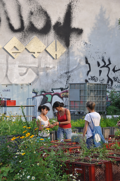 The Prinzessinnengarten (Princesses’ Garden) is a participatory community urban agriculture experiment in Berlin-Kreuzberg. Begun in the summer of 2009 with the support and participation of neighbours and gardening enthusiasts, the project is a radical transformation of a corner of the city’s Moritzplatz that has remained unbuilt since World War II (due to its proximity to the Berlin Wall and zoning complications).