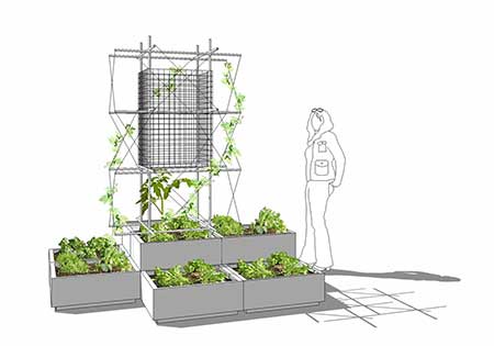 At the start, students from Ryerson University’s Department of Architectural Science were approached in 2011 to help plan the first gardens. The initial concept was to place moveable planters along a newly pedestrianized street at the heart of the Ryerson campus but the result is a south-facing border garden between the street and a classroom building. The project has grown considerably over the years. In addition to several in-ground and container gardens on campus, their rooftop farm on the Engineering building yielded 3,600 kilos of vegetables, herbs, greens and fruits in 2015.