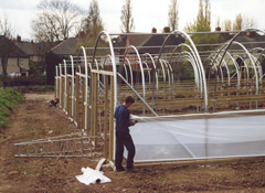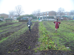 Salop Drive Market Garden, one of Get Growing’s flagship projects, occupies a 1.2 ha, once derelict, site. It is a fully functioning market garden that is accessible to visitors and the local community alike. The project includes several polytunnels, a community hut, community garden spaces, wildlife areas and allotments. The latter existed before the market garden’s creation and were carefully drawn into plans, ensuring their users were able to continue cultivation through the period of construction. The site is maintained and tended by disabled individuals from Ideal for All. The market garden produces boxes of vegetables that are packaged on-site and distributed to the local community for a small fee. The space also hosts regular training courses, which enable residents and local schoolchildren to learn more about food growing, preparation and how to cook the produce.