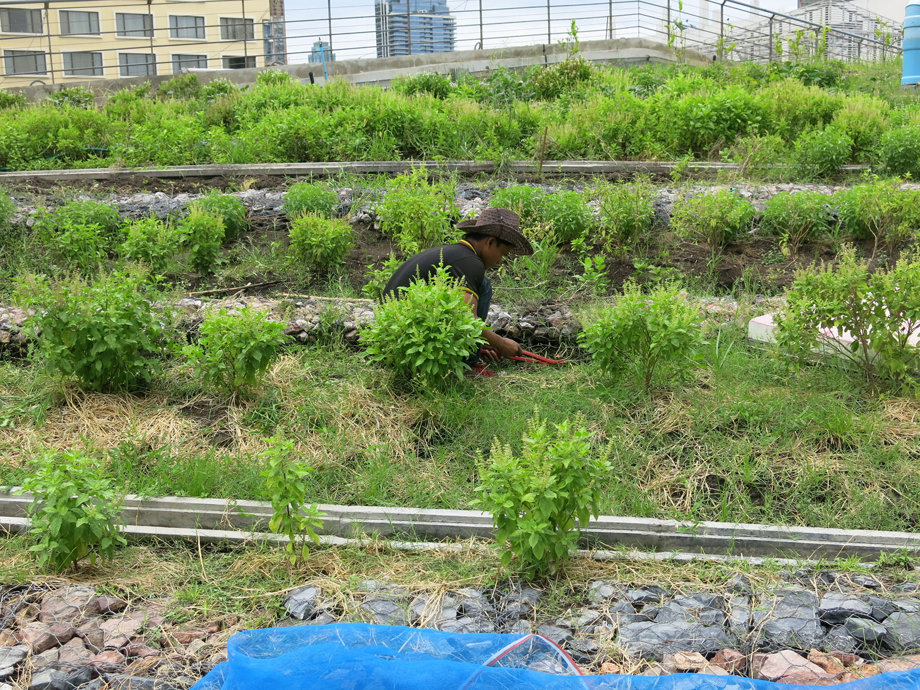 In March 2015, Chulalongkorn University opened an urban agricultural learning center called Siam Green Sky (SGS) on the rooftop of the Siam Square One Shopping mall, located at the one of the busiest intersections in Bangkok. The initial investment on the roof was approximately US$ 161,700, covering an area of 2 000 m2, making it probably Thailand’s largest rooftop garden. It offers agricultural learning experiences to visitors and students free of charge, focusing on the dissemination of innovative agriculture, landscape management, art, urban ecology, and safe food production processes. SGS was designed and developed based on three main ideas: a learning center, agricultural awareness, and social networking. Here, Thai farmers’ methods are brought to the heart of the city so that urban residents can absorb some of their knowledge.