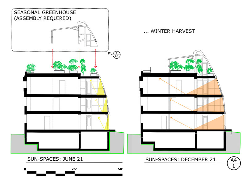 Maison Productive House (MpH) in Montreal, Canada illustrates the potential for integrating food as a central theme in small mixed-use urban infill and renovation projects that aim to address sustainable urban living. It also demonstrates a vision for residential development based around shared facilities, including food production, where residents take responsibility for their impact on the environment.