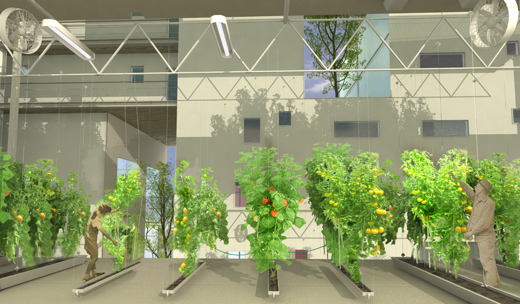 Le projet « Agro-Housing » propose une réflexion sur l’importance de conserver des cultures et des traditions rurales au sein des environnements urbains denses du futur, laissant penser que les meilleurs parts de la culture rurale seraient source de résilience urbaine.