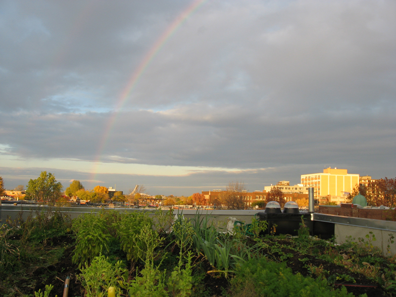 Autant les jardins sur le toit qu’au niveau du sol utilisent la terre récupérée à même le site. Le sol est enrichi à partir du compost généré au sein du bâtiment, dont la quantité a quintuplé depuis le projet de rénovation. La technique de jardinage au « pied carré » est utilisée pour optimiser le rendement des surfaces cultivables, et l’approche de permaculture s’étend bien au-delà des frontières de la propriété pour inclure l’écosystème urbain dans son ensemble. Quant aux préoccupations par rapport à la contamination potentielle des cultures par la récupération des eaux grises, des études ont démontré que les impacts pour la santé ou le sol sont négligeables.