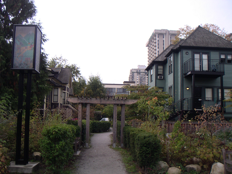 The block of mostly late nineteenth-century Victorian homes in Vancouver’s West End was almost demolished when Vancouver increased open space in the 1950s by clearing a large swath of buildings, and the city intended to clear this historic block as well, but strong advocacy organizations fought for the preservation of these historic structures. In the end, Vancouver agreed to allow the neighborhood to remain and invest in the project, leasing the land and houses to the Community Housing Society for 60 years. In 1999, the transformation began, renovating the block into an “eco-friendly, diverse, affordable, heritage, socially-aware, and mixed-residential environment that would be a boon to all of the West End.”