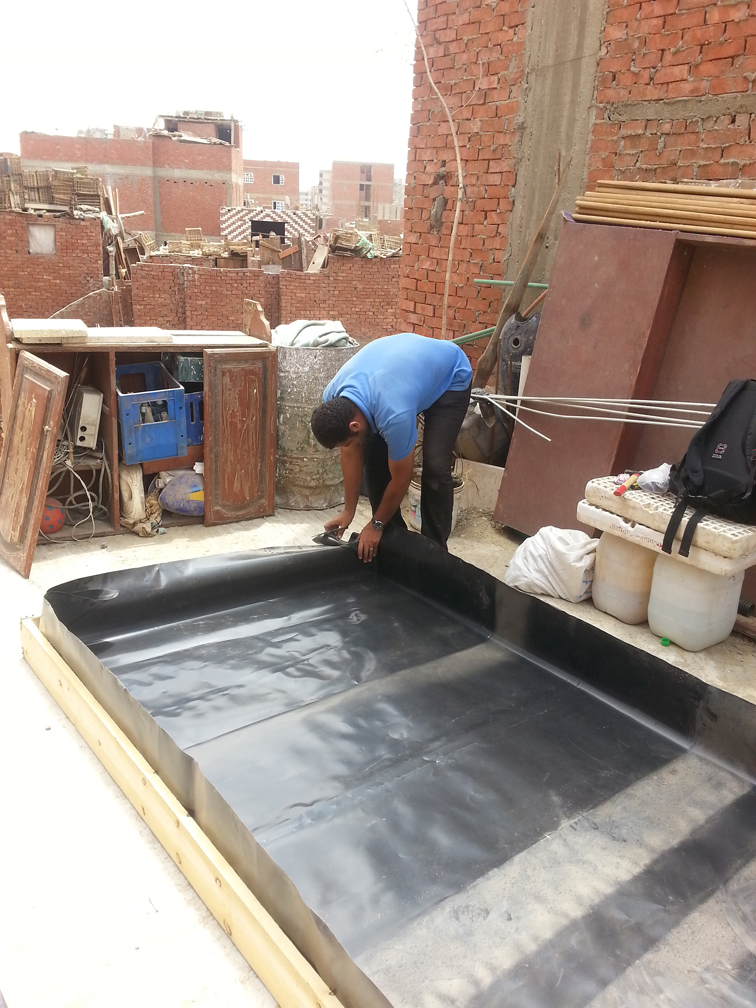 In 2013, a series of studies conducted by the German International Aid (GIZ)’s Participatory Development Programme in Urban Areas (PDP) assessed possible measures to improve people’s livelihood and urban resilience in nine informal settlements of Cairo. As a result, different types of possible participatory climate change adaptation measures were identified. A rooftop-farming project in one of these settlements, Ezbet Elnasr, was established in 2014, in cooperation with several partners, including Schaduf as well as the Urban Upgrading Unit of Basateen District and a local NGO, Sharq Elbasateen. Schaduf developed a simplified hydroponic technique while Sharq Elbasateen supported resident selection and provided a training venue.