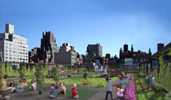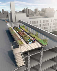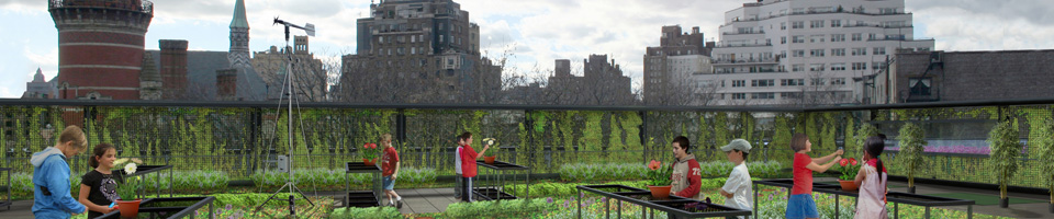 The spike in discussions of climatic and nutritional problems over the last few years has led many parents and teachers to revive the importance of outdoor classrooms and gardens in schools. As a result, the transformation of the rooftops of several New York City public schools is currently planned. Depending on building structure, access, funding and maintenance issues, the designs differ in regards to the types of space (greenhouses or open-air gardens) and to growing methods. Three Manhattan-based examples, all of them to be built in 2010, illustrate this emergence of rooftop school gardens.