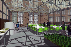 Because of roof load and access limitations, the garden will be laid out with a system of light, easily and firmly installed trays where herbs will be grown, so the production of vegetables and fruits will remain restricted to the ground-level garden. Next to a so-called conservation area, separate plots will be set up for each grade.