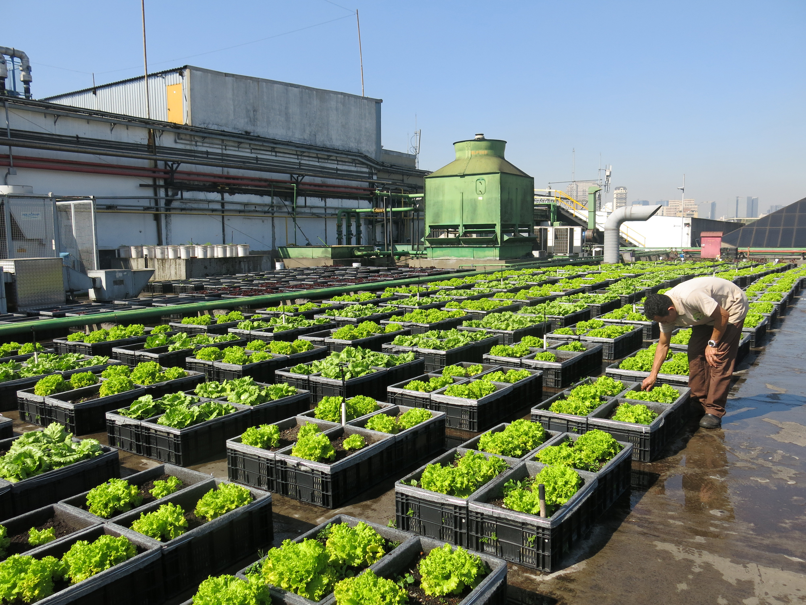 The compost generated is used in a garden on the roof of the mall where a range of containers produce a variety of herbs, vegetables and legumes. All the produce is distributed to employees of Shopping Eldorado. The garden was initiated in 2012, starting with about 2,500 m2, with the goal of occupying 6,000 m2 of the roof. An agronomist guides both the compost operations and the productive green roof, although responsibility for the garden was shifted in 2016 from Bioideias to a landscape management firm.