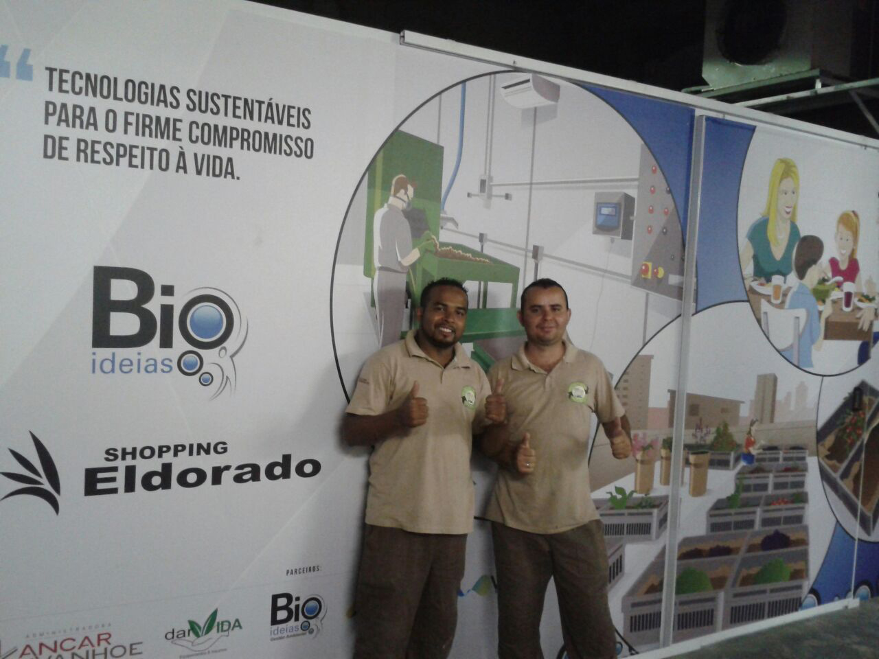 Ce dernier commence par la collecte et le triage des déchets organiques réalisés dans une cabine spéciale installée dans les Food-courts – le triage des aliments a été ajouté à la charge de travail du personnel de nettoyage. Pour réaliser le compostage des ordures, le Centre Commercial décide à la fois de contracter avec un prestataire de service, l’Institut Bioidéias, et de libérer un petit espace sur site. Suite à une série de tests, deux enzymes ont été fabriquées par Bioidéias, ce qui a permis de réduire de plus de 180 jours à juste une semaine le processus de compostage et d’éliminer complètement les odeurs désagréables.