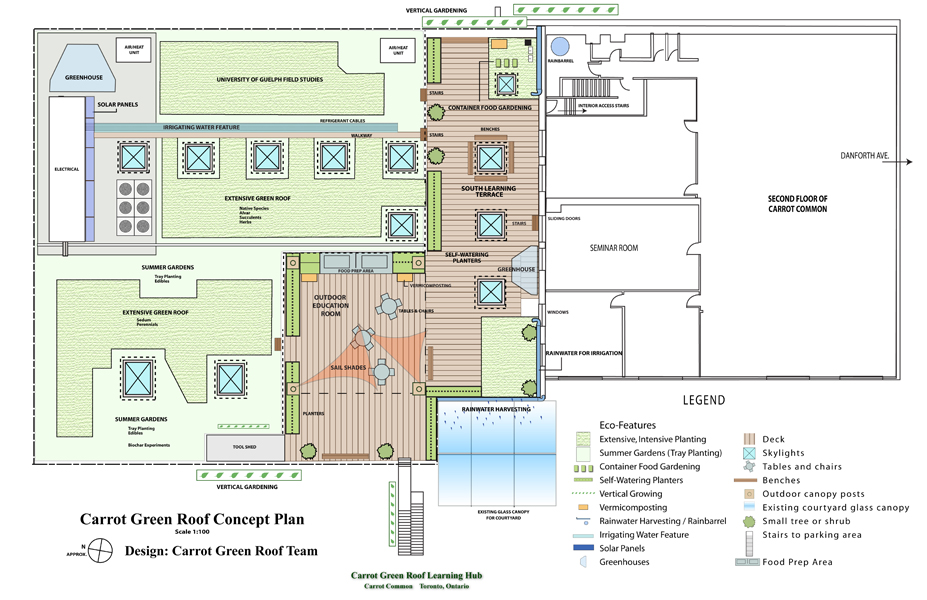 Après deux années de planification, une nouvelle charette d’aménagement rassemblant de nombreux acteurs, une collecte de fonds et une conception détaillée, le projet « Carrot Green Roof & Garden » arrive à terme, sous la direction de Carrot Cache, la branche non lucrative de Big Carrot, avec la participation d’un certain nombre de partenaires locaux.