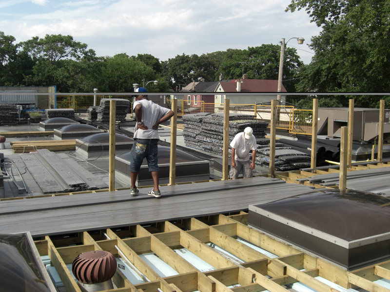 In 2008, major roof leaks occurred. This disaster provided opportunity. After two years of planning and fundraising and a second design charrette consulting with many stakeholders, the Carrot Green Roof garden project was completed. Its implementation was led by Carrot Cache, the Big Carrot’s non-profit arm, along with over 40 people who were actively involved in the design and construction.