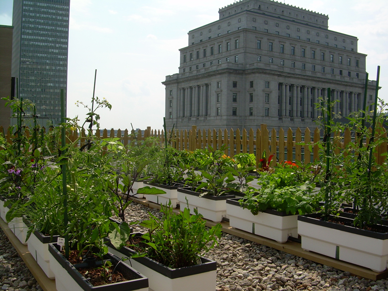 Le jardin de l’hôtel couvre 195 m2 de la terrasse du troisième étage, son orientation au sud lui permettant de bénéficier d’un ensoleillement suffisant. Il constitue un système intensif dont la production annuelle représente une économie de 25 000 à 30 000 dollars canadiens (19 000 à 26 800€).