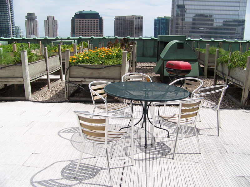 Pour le chef-cuisinier David Garcelon, les herbes aromatiques sont faciles à cultiver et idéales pour les balcons. Le jardin de l’hôtel a été créé en 1998 au 18ème étage, avec 17 plates-bandes et 23 pots qui permettent de cultiver aussi bien des herbes aromatiques – thym citron, ciboulette, romarin – que des légumes comme des haricots rouges par exemple, ou encore des tomates-cerises, des baies arctiques et des poiriers. À l’été 2008, David Garcelon a également installé une ruche - plusieurs ruches produisent maintenant un miel primé. Le jardin est équipé de composteurs et un tout petit vignoble y a même été planté. Le jardin d’herbes aromatiques a reçu un prix du programme environnemental de la ville, qui a salué l’idée d’une production employée au restaurant de l’hôtel. En été, les visites hebdomadaires sont devenues une attraction.