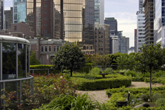 In 1998, the 18th-story garden was created with 17 beds and 23 planter pots. These pots and beds contain a variety of herbs and vegetables such as lemon thyme, chives, rosemary, Italian red kidney beans, pear trees, sweet cherry tomatoes, and arctic strawberries. In the summer of 2008, their then Executive Chef David Garcelon also brought in a queen bee and her hive - now producing award-winning honey. There are also composters and a very small vineyard. The effort for setting up the herb garden earned an award from the city’s environmental program for successfully producing herbs for use in the hotel’s restaurant. Weekly visits in the summer season have even become an attraction, combined with afternoon tea.