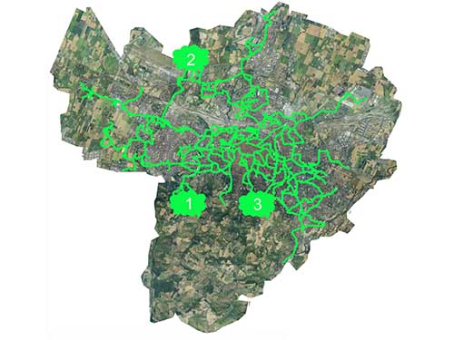 Building on these experiments, extended through the use of aerial images and CAD software, the researchers quantified the potential productivity of a network of vegetable gardens occupying all suitable flat roof and terrace spaces across Bologna. If the 82 ha of available rooftops would host simplified soilless gardens, a potential yield of 12,500 tonnes per year could be obtained, covering more than three quarters of the city’s vegetable requirements and capturing an estimated 624 tonnes of CO2 each year. Other potential benefits could include the creation of green corridors for biodiversity (up to 94 km of green corridors and a density of 0.67 linear km per square km of urban land), based on connections between spaces that were within 500 m of each other (most common bee pollinators have a flight foraging distance of 750–1500 m).